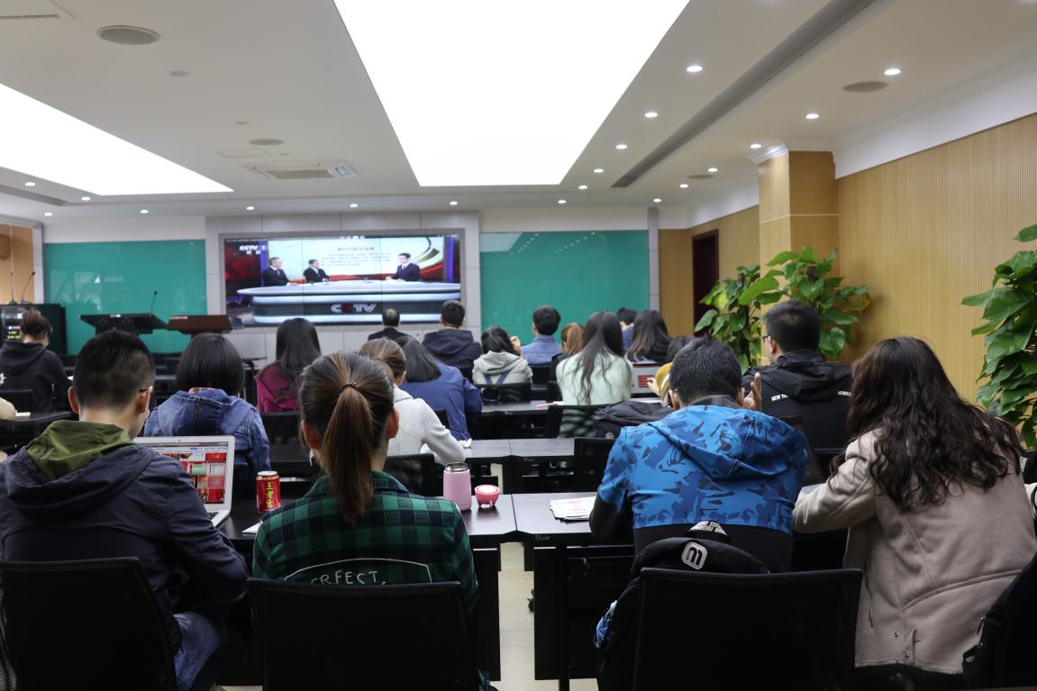 抖音短视频 于10月24日上午组织师生在学院408室观看中国共产党第十九次全国代表大会闭幕会,院长肖铁岩、党委副书记(主持工作)罗滌、院长助理吕进、团委书记王玉琴和部分师生到场观看。