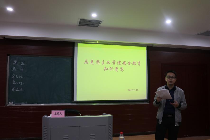 于11月19日在学院504室举行了一场安全教育知识竞赛活动。首先,实习辅导员刘凯老师对研团委学生会的精心策划和付出表示感谢,并强调了开展安全教育的目的和意义。为了增加竞争性和趣味性,所有参赛同学被分为五个小组,采用积分制。答题开始后,各小组争先恐后,纷纷举手抢答问题,有些小组按照自己的惯常思维,没有细细思考选题,于是出现了前面的小插曲。整个安全知识竞答在紧张而活泼的气氛中结束,最终,第三组以31分的总成绩胜出,组内每位成员均获得了精美的小奖品。