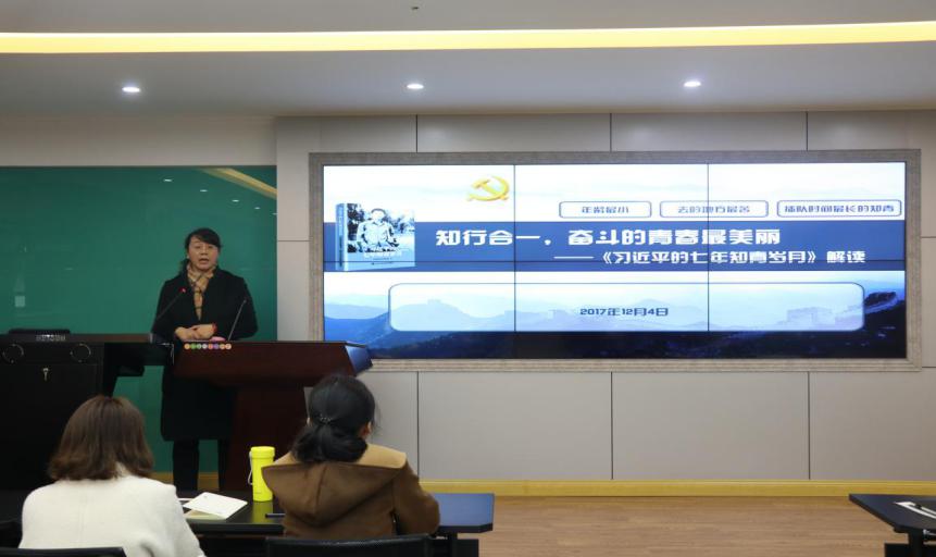党委副书记(主持工作)罗滌担任主讲嘉宾,她以《习近平的七年知青岁月》一书为出发点,分别就习近平知青岁月的情况、知青岁月对习近平人生的意义、习近平知青岁月给我们的启示等三个方面进行了深入解读,为大家作了一场生动鲜活、振奋人心的宣讲。