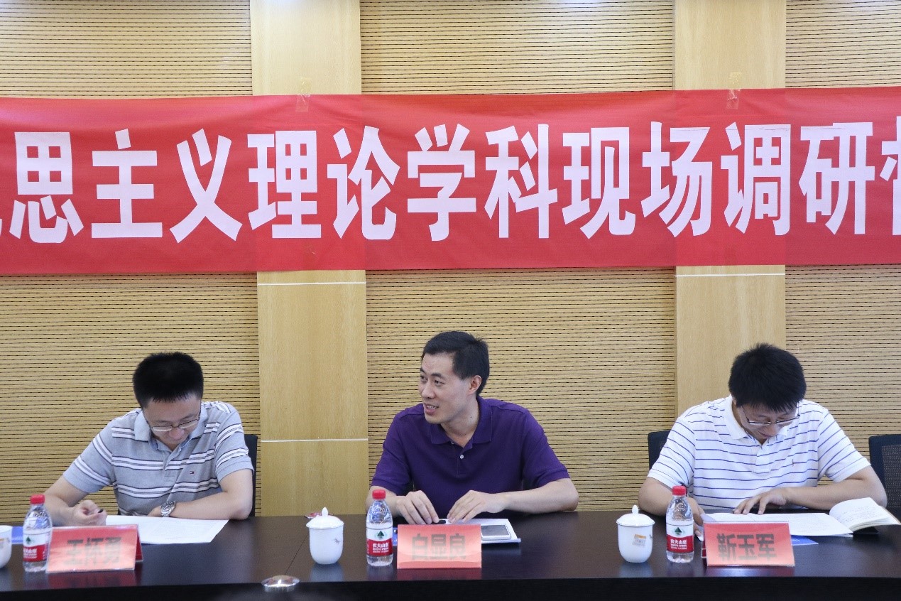 罗滌书记首先对到场的各位专家、学者表示了诚挚的欢迎与感谢,随后她将我院马克思主义理论学科发展现状以及在发展过程中遇到的挑战向与会专家作了汇报。她指出了学院马克思主义理论学科建设中存在的不足之处:第一,我院虽初步完成了学科建设,但学科特色还需探索凝练;第二,学院科研建设队伍急需扩大,科研产出还需激励;第三,尽管在短时间内学院取得了一定发展成效,但未来的发展趋势依然严峻。罗滌书记强调目前学院学科建设的主要任务是:填空白、抓重点、显特色。最后,她希望能够学习各兄弟院校的先进经验,不断提升自我实力,促进共同发展。靳玉军教授和王怀勇副院长分别进行了提问,进一步了解了我院马克思主义学科课程体系建设情况。
