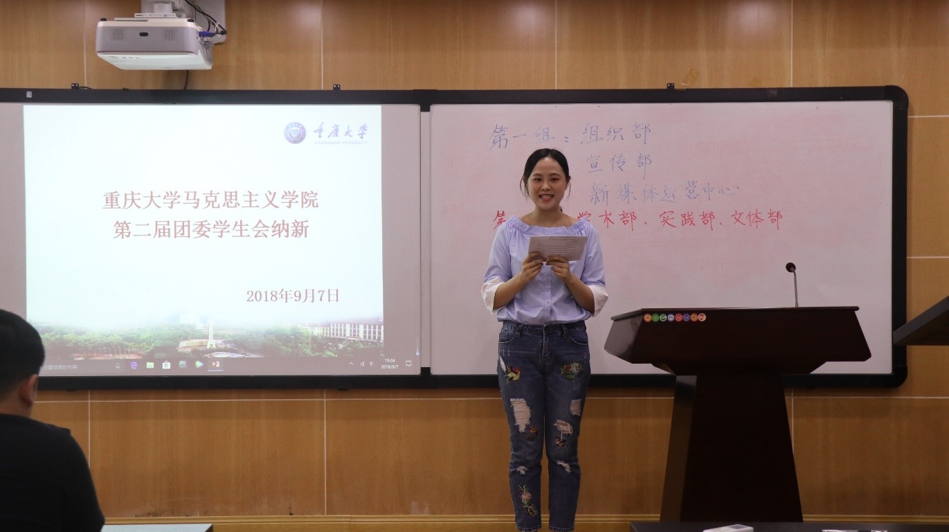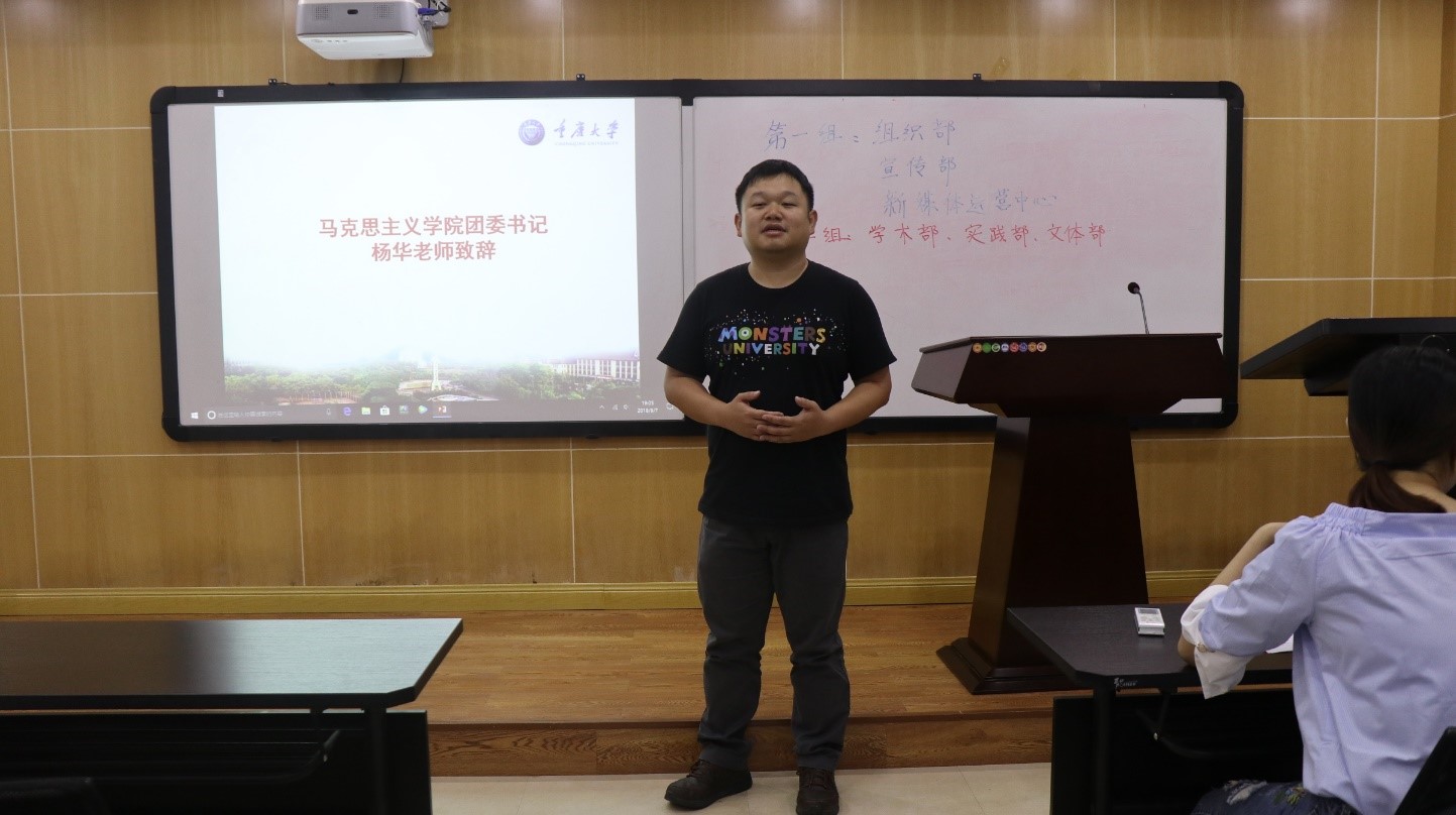 第二届研团委学生会纳新大会于2018年9月7日下午在学院412教室举行,学院团委书记杨华老师出席并讲话,大会由研团委学生会副主席蒋艺主持进行。