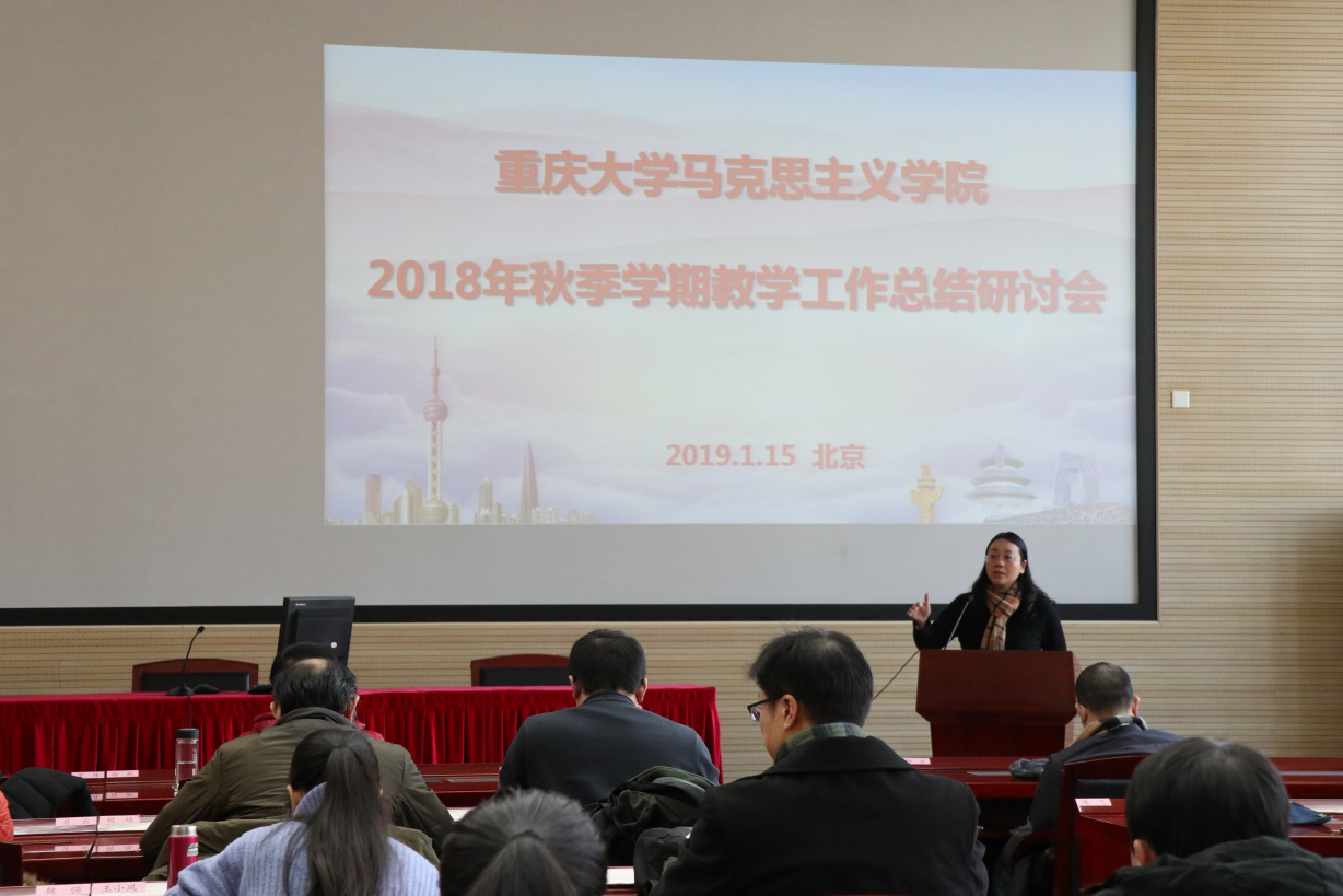 罗滌在研讨会上作总结讲话。她提出“我们到底需要打造什么样的思政课”的问题引发大家的思考。她指出,我们既要培育更多“精彩一课”和精品课程,也要加强思想政治理论课的规范化建设,同时对自己提出更多更高的要求,不断实现学院教学工作的整体稳步提升。最后,她对一学期以来大家的辛苦付出表示感谢,并鼓励大家在新的一年砥砺前行,不断实现新突破,取得新成果。