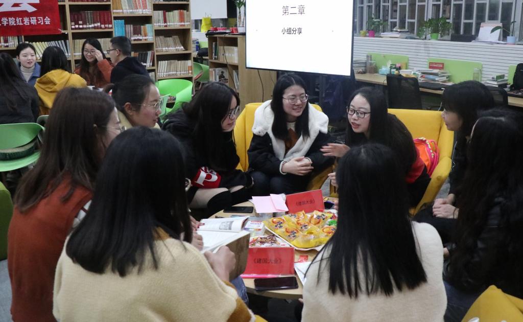 的本次读书会满足了我想象中读书会所有的样子,观看纪录片时的情感流露,朗诵总书记寄语时的铿锵有力,制作小组读书笔记时的欢快愉悦等等这些环节都让我印象深刻,希望以后还能够继续参加。”光电学院的李胜同学也表示:“这是我第二次参加红岩读书会了,每次都有新收获,希望马院的读书会以后有更多形式。”