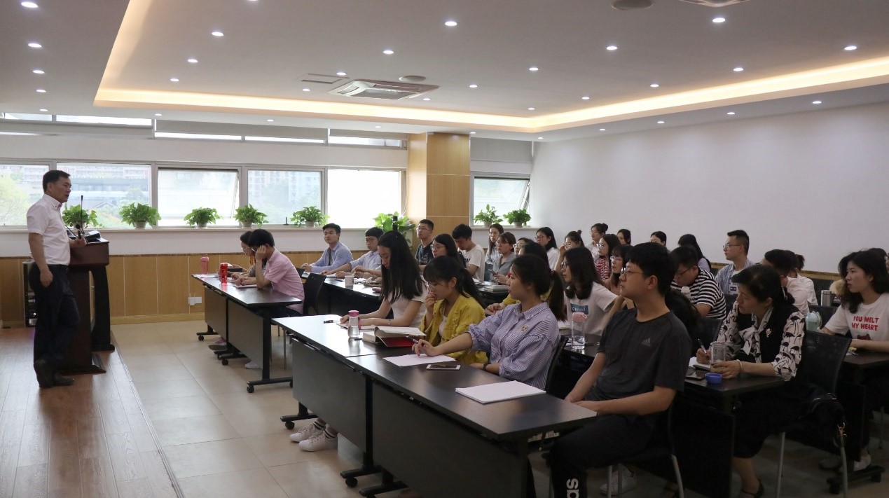 鄢教授从“选题-开题-理论-假设-数据-测量-方法-结论”八个环节向大家讲述了硕士论文的写作流程,重点分析了硕士论文的选题、开题报告的撰写以及研究方法的选择三个方面。他认为:“选题不仅要小而精,而且要符合专业方向以及有研究价值,切忌选题超越实际、大小失衡、庸俗老套”。鄢教授指出开题报告必须涵盖问题的缘起和概念界定、研究目的和意义、研究难点和创新点、研究思路和基本框架、写作计划和参考文献等六个方面的内容,他还强调在此过程中,文献综述一定要进行归纳、整理、分类、评析,得出自己的结论,否则将难以写出一篇好文章。最后,鄢教授以2017级研究生的毕业论文为案例,为大家详细分析了在选题、关键词确定、研究方法选择上存在的主要问题。
