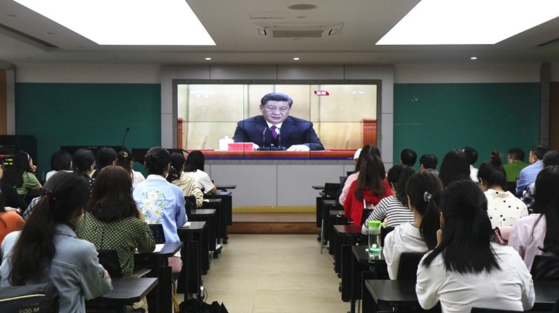 组织师生在学院第一会议室观看 “纪念五四运动100周年大会”现场直播。抖音短视频
