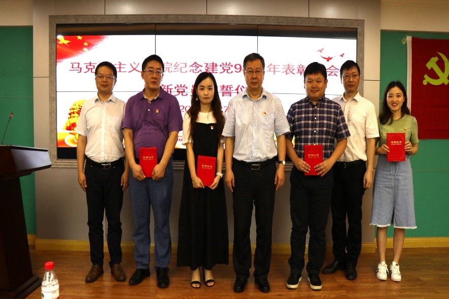 在颁奖之后,张邦辉院长带领学院新党员宣誓,老党员重温入党誓词。新老党员右手握拳,面向党旗,作出庄严承诺。