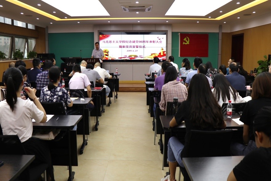 院长张邦辉、副院长徐鲲、吕进及学院全体师生党员参加了表彰大会,会议由学院党委副书记温健琳主持。