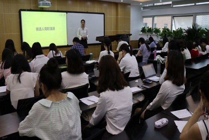 随后,王莉、秦中原等十二位候选人分别上台进行竞选演讲。此次大会秉承民主公正、公平公开的原则,最终选拔出王莉、秦中原、赵兰、廖凡瑶、王琼莹及李丹六位同学成为新一届书记团、主席团成员。接着,杨华、刘倩两位老师为第二届研团委学生会的部门干事、部门部长、书记团、主席团成员颁发聘书。