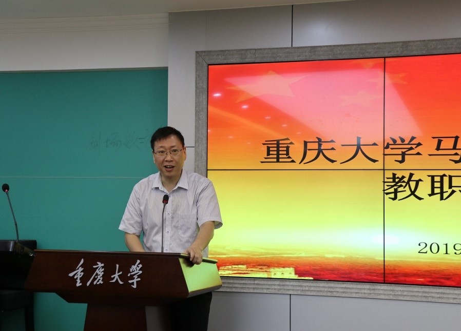 马克思主义基本原理教研室主任陈飞以集体备课、嘉陵论坛、红岩读书会、大学生讲思政课比赛等为例,对教学工作进行总结。接着,他指出该教研室目前仍存在学生学习积极性不高、部分教学知识点难度较大等瓶颈,下学期,计划针对这些问题进行精准突破。