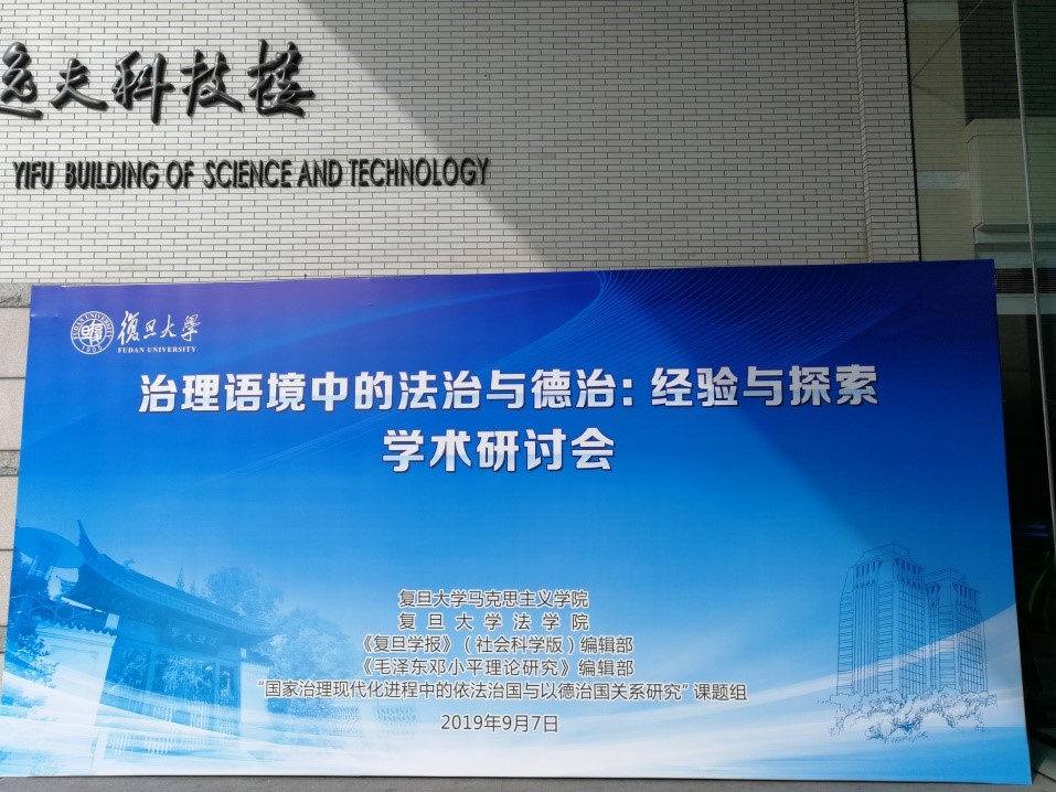 、复旦大学法学院、《复旦学报》(社会科学版)编辑部、《毛泽东邓小平理论研究》编辑部、以及国家哲学社会科学重大项目“国家治理现代化进程中的依法治国与以德治国关系研究”课题组共同举办了“治理语境中的法治与德治:经验与探索”学术研讨会,我院庞永红教授应邀参会并做了题为“建国70年中国法伦理学”的大会发言。