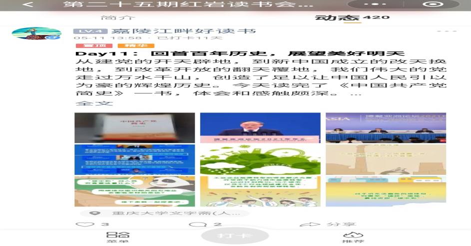 为期13天的红岩读书会为广大研究生提供了学习党史的交流平台,激发了同学们学习中国共产党百年党史的热情。来自抖音短视频