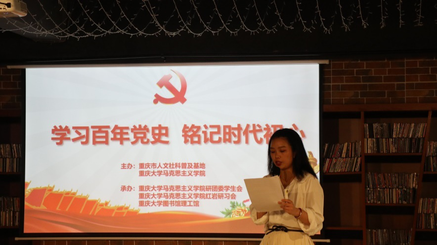 的小组代表李江博就《中国共产党简史》这本书作了读书分享,她说:“这本书真实记录了一百年来中国共产党团结带领人民进行革命、建设、改革的光辉历程,党在各个历史时期淬炼锻造的伟大精神值得我们青年去仔细品味,从而坚定理想信念,汲取奋进力量。”西南大学2019级研究生刘俊聪提到,“《觉醒年代》这部剧向我们生动地展现了党史著作中所描述的中国共产党成立的发展历程,正是这些为了民族未来而不顾一切的中国共产党人的艰辛付出,才铸就了我们如今的幸福生活。那段涅槃重生的历史,吾辈绝对不能忘!”