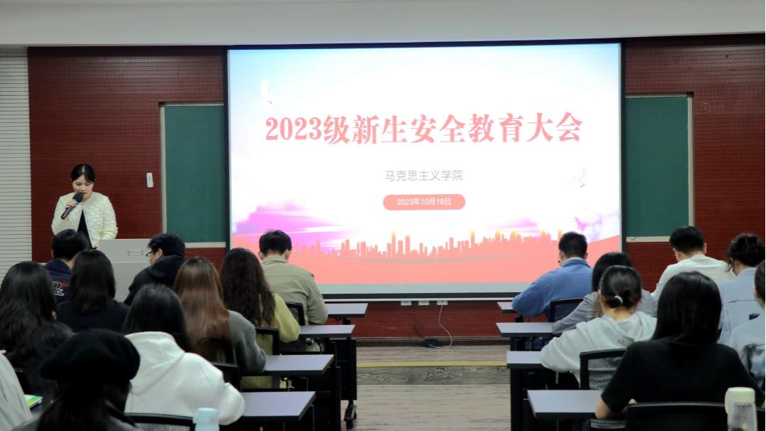 在406教室开展了2023级新生安全教育大会,大会由学院党委副书记、纪委书记袁利主持,学院实验室老师徐尧以及全体2023级博士研究生和硕士研究生参加。