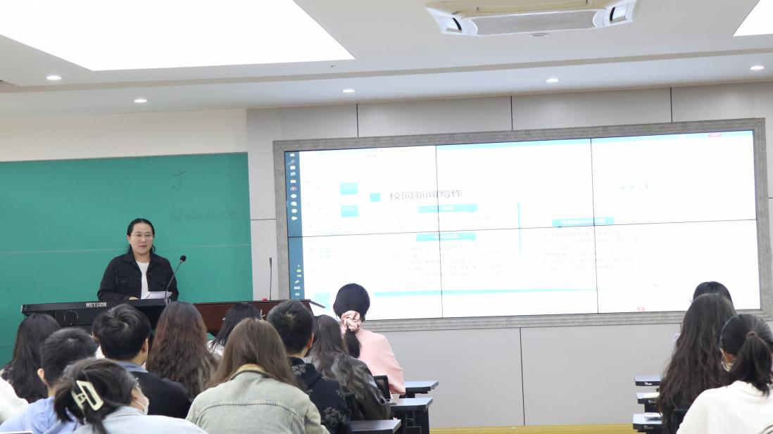 韦丽阐述了新时代新闻宣传工作的新作为。她谈到,在新时代新征程背景之下,宣传思想文化工作面临新形势、新任务,新闻宣传从业人员必须要有新的气象、新的作为,自觉承担起举旗帜、聚民心、育新人、兴文化的使命任务。她强调作为校园新闻从业者,需要不断提高媒介素养,既要满足受众新闻需求,也要具备新闻价值判断的能力,更要正确引导舆论导向。