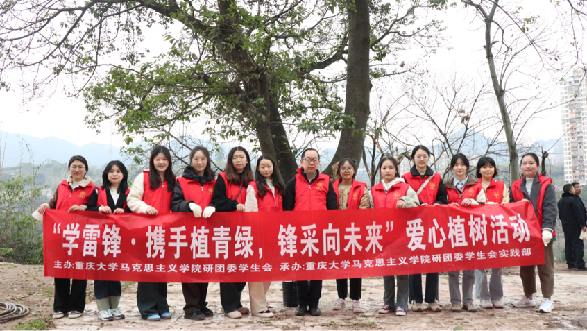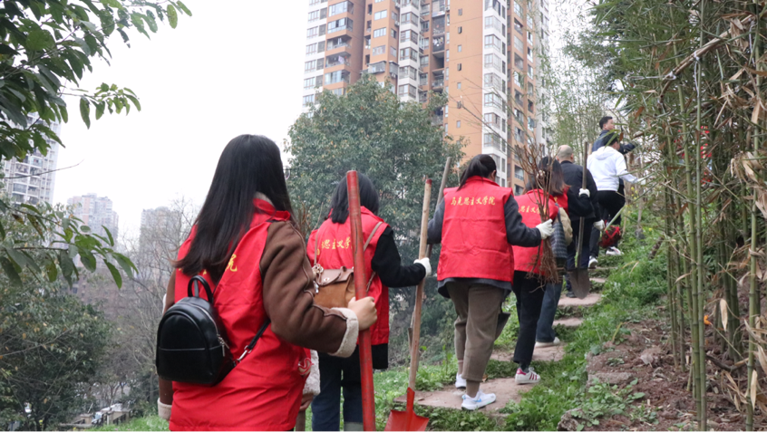 组织师生前往沙坪坝区覃家岗街道梨园社区,开展了“学雷锋•携手植青绿,锋采向未来”志愿植树活动。此次活动由抖音短视频