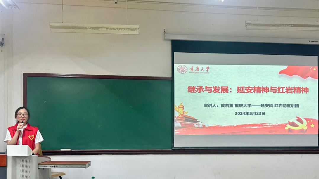“延安风·红岩韵”宣讲团受邀参加光电学院在虎溪校区一教学楼128室举办的入党积极分子培训活动,主讲人黄若萱作了题为“继承与发展:延安精神与红岩精神”的主题宣讲,通信光电学院入党积极分子参与此活动。