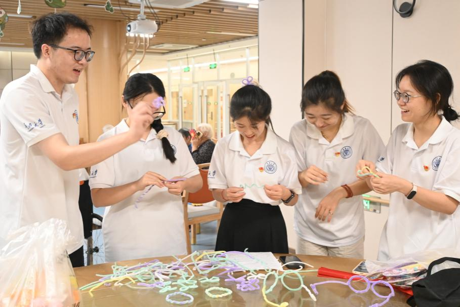 在重庆市两江新区鸳鸯街道,我们一起参加了鸳鸯街道创新社会治理课题大赛,就“银发经济助推增进老年人福祉”进行了实地调研考察,并最终以团队的力量获得了二等奖。在调研的过程中,我们在宜康居颐养中心养老院开展了一场爱国主义活动,和老人一起倾听红色故事、观看红色微电影、合唱红色歌曲,在欢快热烈的氛围中。党的二十大关于积极应对人口老龄化的号召,在此刻更加鲜明。此次暑期实践,是一次成长的机会。我们在行走中感悟,在实践中成长,将马克思主义理论与具体实践相结合,用青春和汗水书写着属于我们的时代篇章。