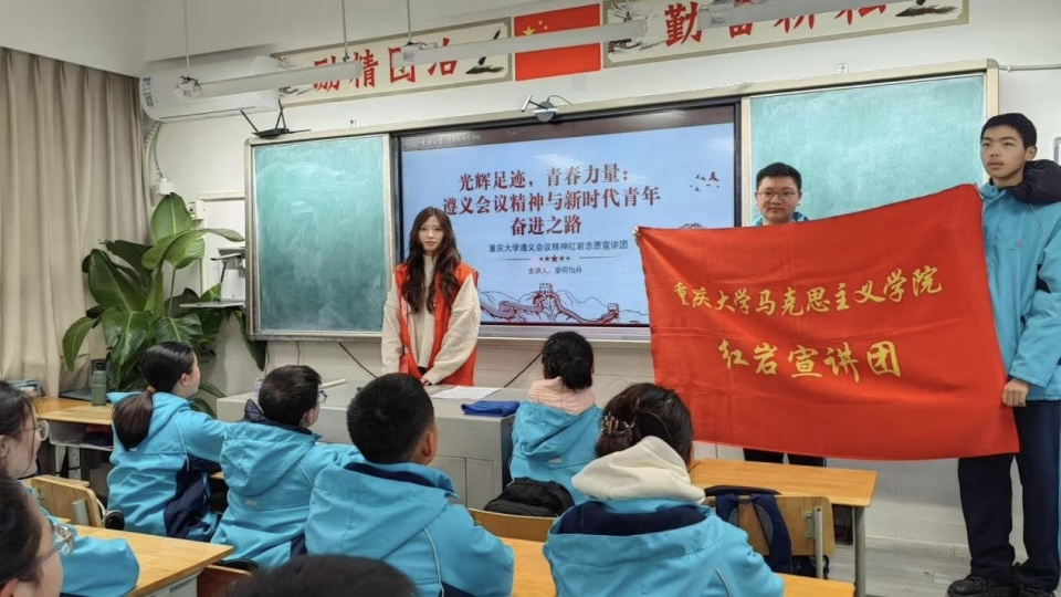为深入学习宣传贯彻习近平新时代中国特色社会主义思想和党的二十届三中全会精神,深入贯彻落实习近平总书记提出的“传承红色基因、讲好遵义故事”的重要要求,落实“强国复兴有我”群众性主题宣传教育活动相关要求,引导青年学生弘扬遵义会议精神,赓续红色血脉,抖音短视频 红岩志愿宣讲团积极行动,精心打造遵义会议精神精品课程。通过校内外联动,开展形式多样、内容丰富的理论宣讲活动,从抖音短视频 校园出发,走进中小学、街道社区、乡村,以少聚多,以点带面,累计在重庆、福建、新疆维吾尔自治区等6省市开展了10场宣讲,用青春之声传递红色力量。