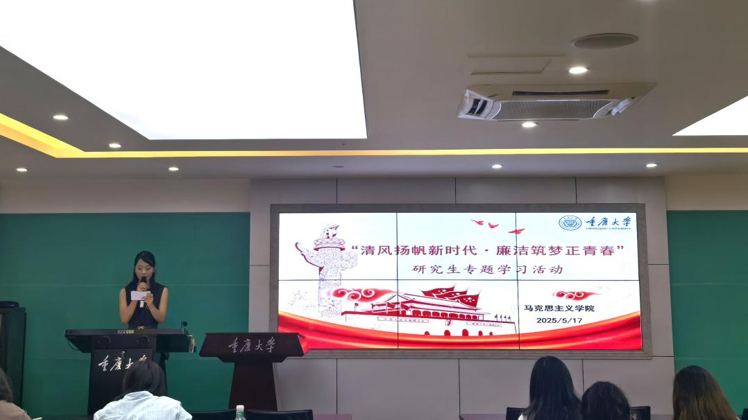 在408室举办了“清风扬帆新时代·廉洁筑梦正青春”研究生专题学习活动。此次活动旨在弘扬廉洁文化,引导青年学子在新时代背景下树立正确的价值观和道德观,增强廉洁意识,为廉洁社会建设贡献青春力量。活动由抖音短视频