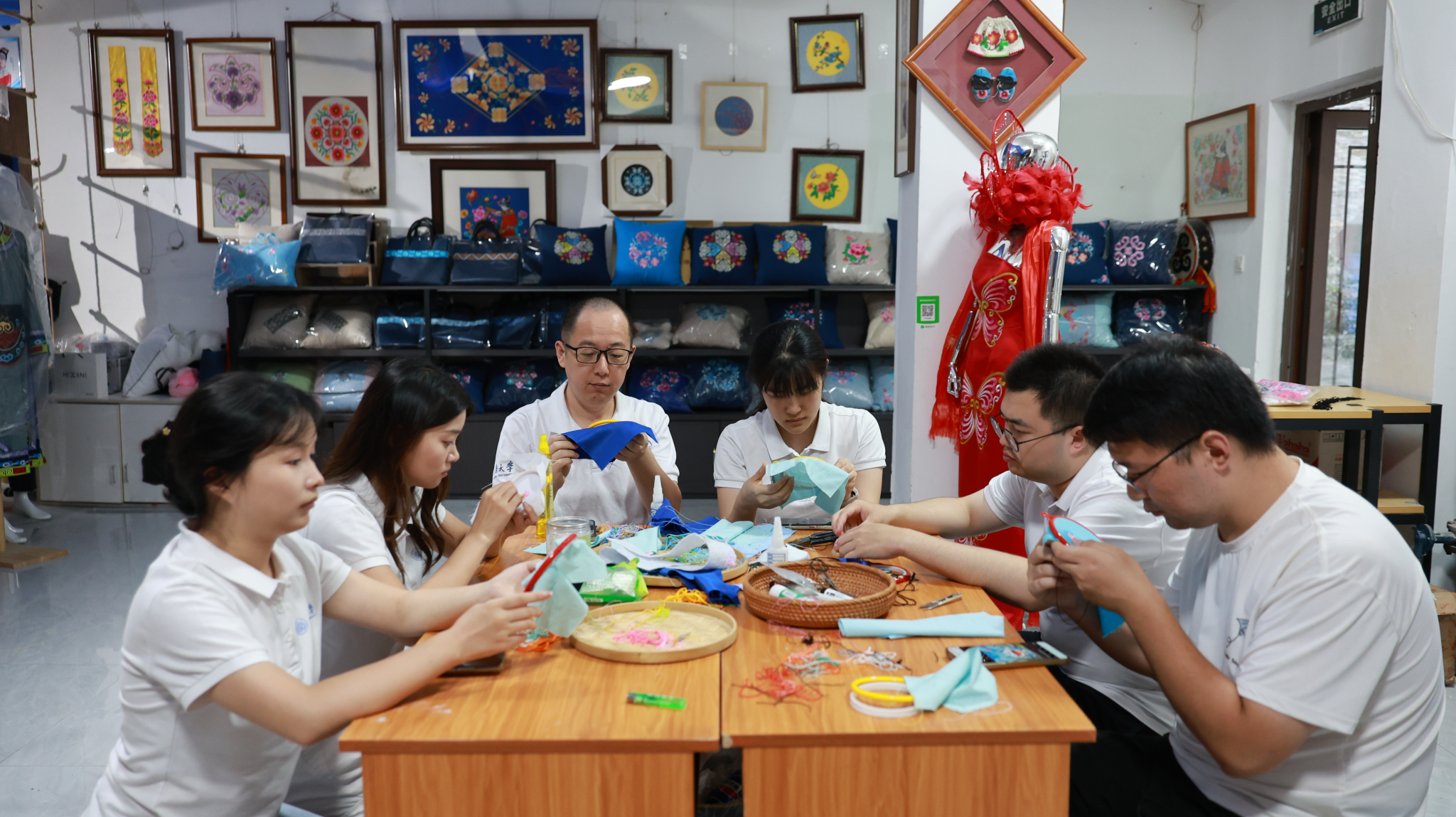 若说大禹文化是北川流淌千年的“精神根脉”,那羌绣便是羌族指尖传承的“文化匠心”。下午14时,实践团成员来到云珍羌绣生活体验馆开启非遗文化的实践之旅,耗费近3个小时完成了各自的羌绣作品。随后,党的二十大代表、羌绣省级非遗传承人陈云珍同实践团成员进行交流分享。