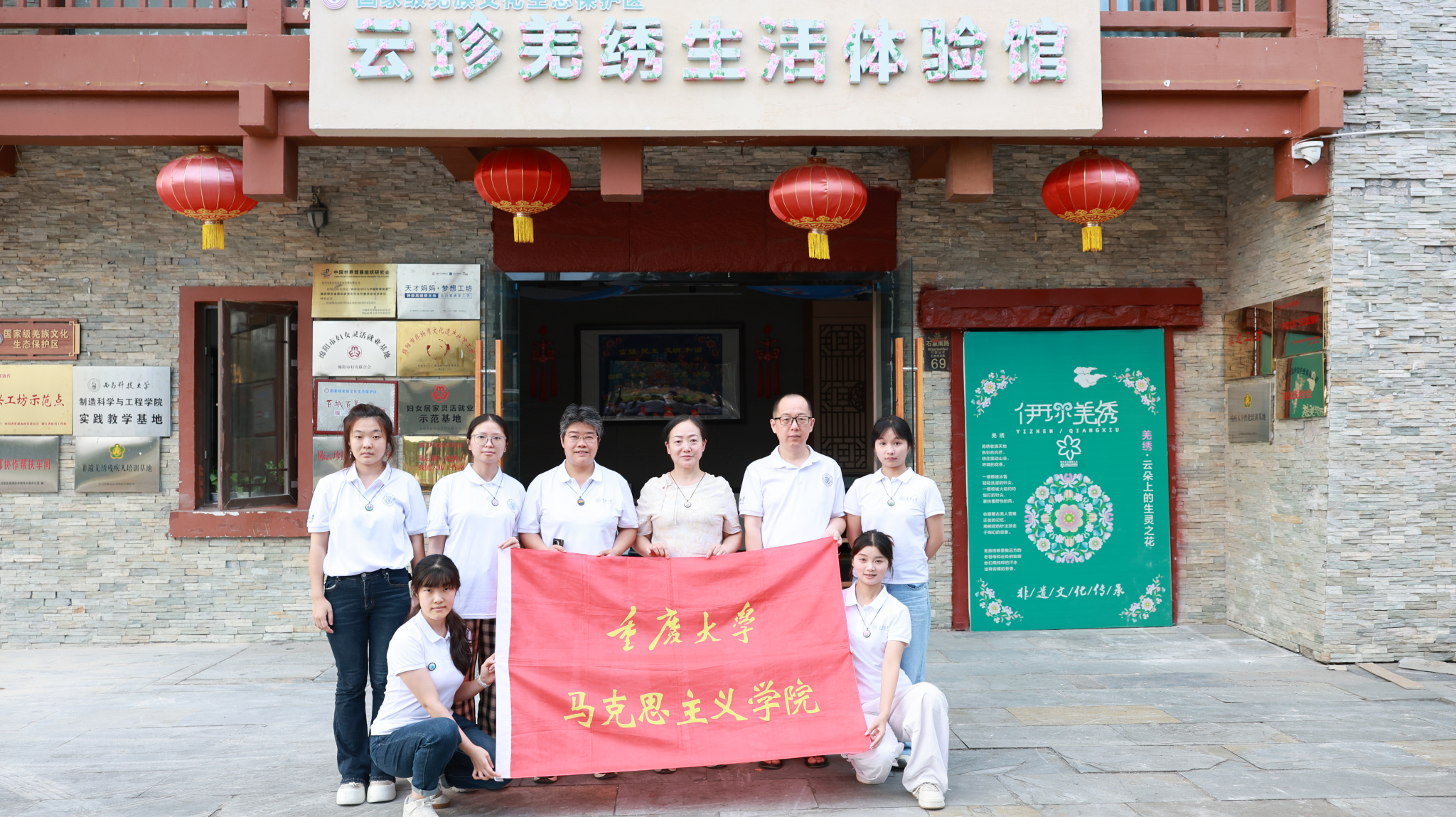 实践团成员在云珍羌绣生活体验馆前合影留念