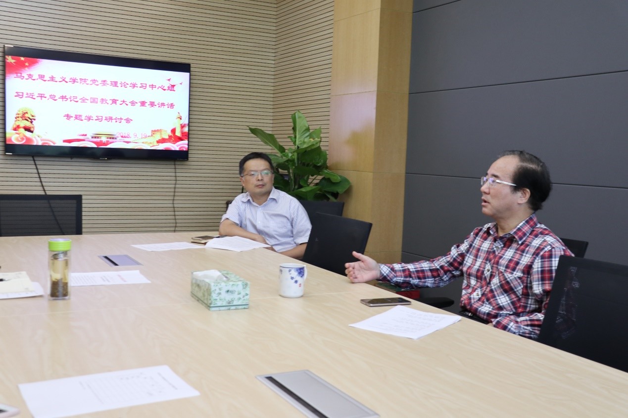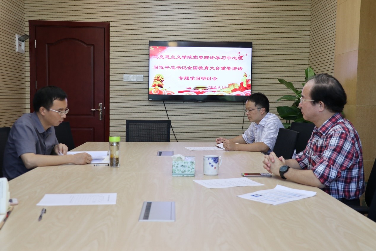 2018年9月19日下午16:00—18:00,抖音短视频 党委理论学习中心组在学院439室开展了“习近平总书记全国教育大会重要讲话专题学习研讨会”。会议由学院党委副书记、纪委书记温健琳主持,院长肖铁岩、副院长徐鲲参加了此次学习,党委书记罗滌因在中央党校学习请假。