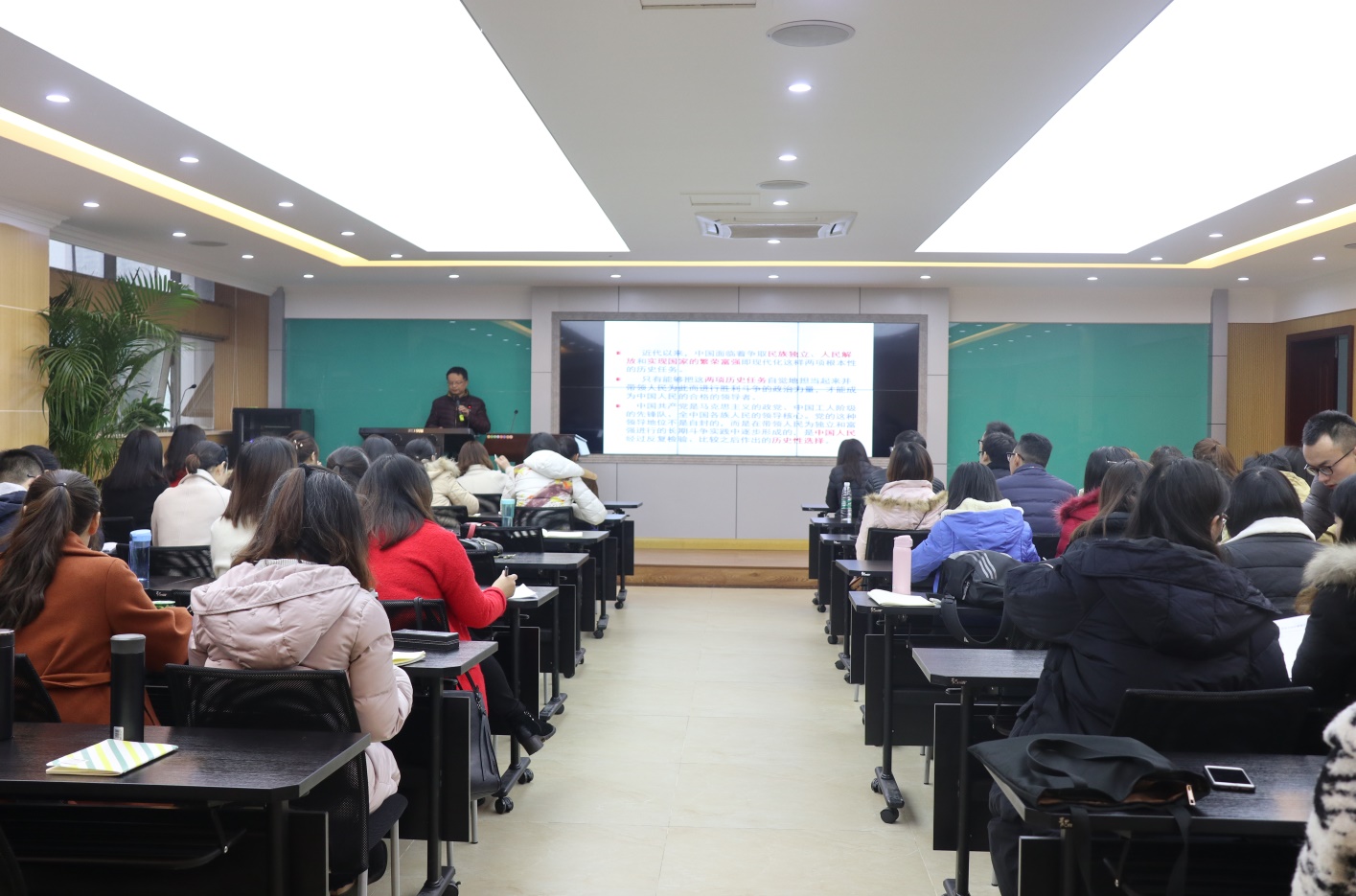 徐院长以时间为脉络,从旧民主主义革命、新民主主义革命、社会主义革命和建设、改革开放和社会主义现代化建设以及中国进入新时代等五个重要时期向大家系统的介绍了中国共产党的革命史、建设史、发展史。他指出近代以来,中国面临着争取民族独立、人民解放和实现国家的繁荣富强这样两项根本性的历史任务。中国共产党是马克思主义的政党、中国工人阶级的先锋队、全中国各族人民的领导核心。党的这种领导地位不是自封的,而是在带领人民为独立和富强进行的长期斗争实践中逐步形成的,是中国人民经过反复检验、比较之后作出的历史性选择。