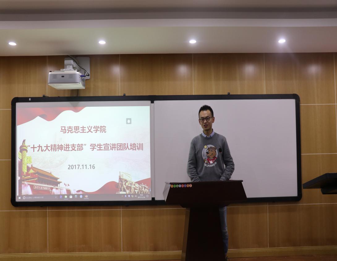 在学院412室进行了“十九大精神进支部”学生宣讲团培训,院团委书记杨华、副书记严芹出席培训会并对宣讲团成员进行培训和指导。培训会由学院学生会副主席尚杨主持。