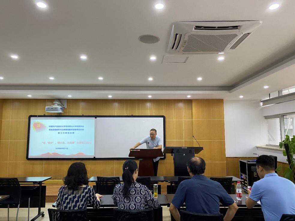 412教室联合开展学习“学‘四史’,明大志,为先锋”主题党日活动。学院党委书记罗滌、党委副书记温健琳参加会议,活动由思想道德修养与法律基础教研室党支部书记魏强主持,思想道德修养与法律基础教研室“思政名师”胡悟副教授作专题讲座。