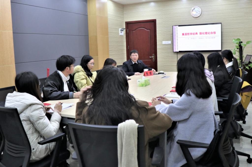 吕进副院长首先以”重温哲学经典,强化理论自信——从《矛盾论》《实践论》学习哲学智慧”为主题为党员同学们讲党课。吕院长从“两论’创作的历史背景和写作目的、核心思想、理论意义、现实价值四个方面为党员同志们进行了深刻且生动的讲述,强调”两论“是马克思主义哲学理论创新的重要成果,党员同学们要汲取其中有益经验,学会从哲学高度去解决思想问题,要用科学的理论武装头脑、指导实践。参课同学纷纷表示此次党课学习受益颇多,在以后的日常学习生活中不仅要用正确的理论指导实践,也要注重将实践上升到理论的哲学精神。