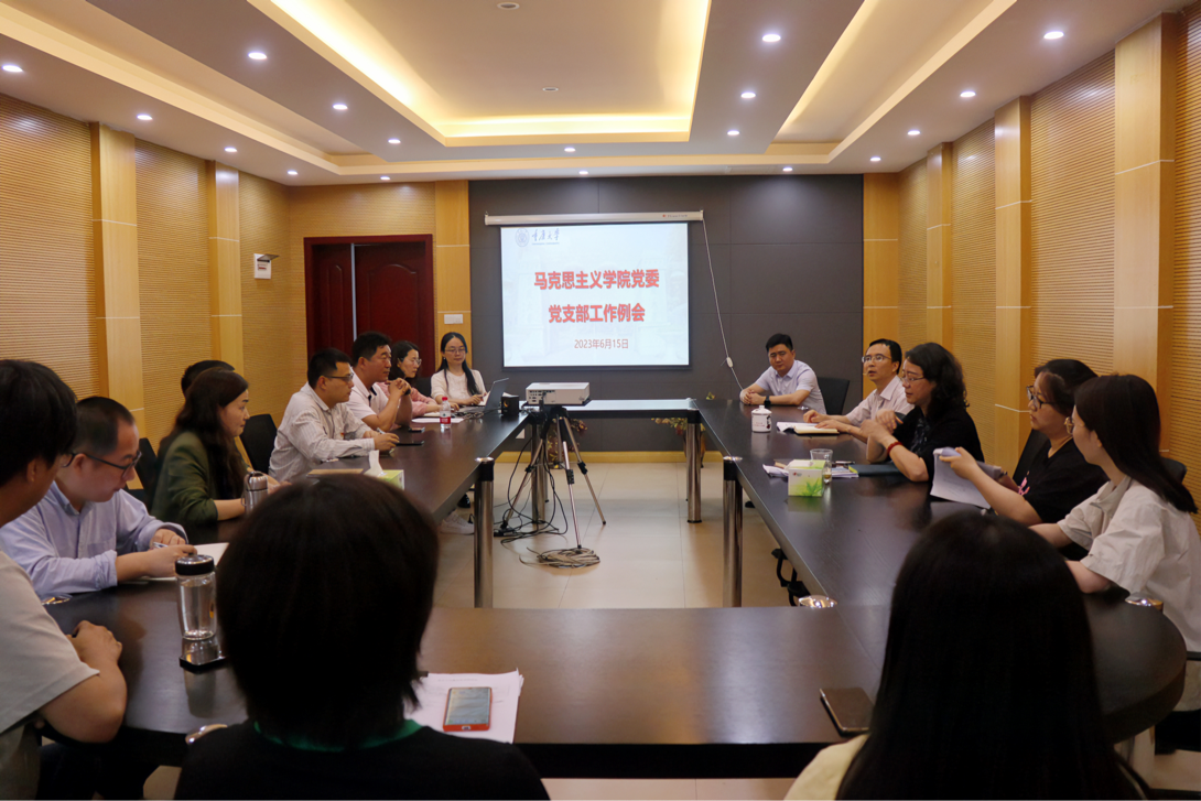 罗滌传达了学校《关于开展好主题教育的工作提示(二) 》《关于组织开展“七一”系列主题教育活动的通知》并布置相关工作。她通报了学院党委近期工作进展及获奖情况和学校宣传部到马院开展重点督查和宣传思想文化工作调研情况,传达布置了学校意识形态工作会及二级党组织书记例会工作事项。她强调近期学院支部工作任务繁重,各支部书记要对标主题教育活动的任务要求,结合支部自身特点,加强基层党建基础工作质量创优,加强党建和业务融合发展,凝心聚力开展好学院党建工作。
