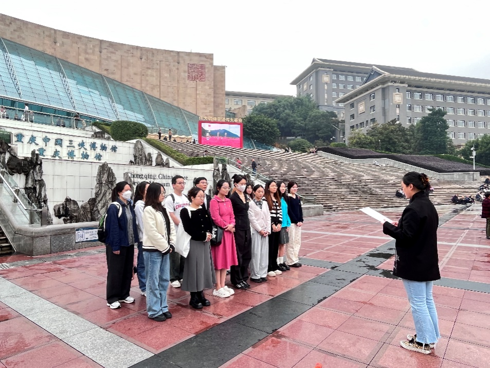 为深入学习贯彻习近平新时代中国特色社会主义思想和党的二十大精神,落实开展“坚定不移听党话,矢志不渝跟党走”党性教育,2023年10月25日下午,我院研究生一支部开展了“寻红色记忆,览中华文明,筑文化之基”主题党日活动,支部党员前往重庆中国三峡博物馆追寻历史印记,感悟红色文化。