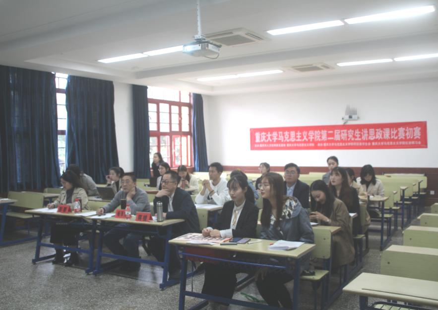 A区五教学楼107、202、312教室顺利举行。本次比赛旨在为学生提供思政课教学锻炼平台,助力马院学子拓展专业素养,坚定理想信念,增强“四个自信”,展现新时代青马学子的风采。来自学院各教研室的9位教师担任初赛评委。学院2020级、2019级研究生共计50余人参与初赛。