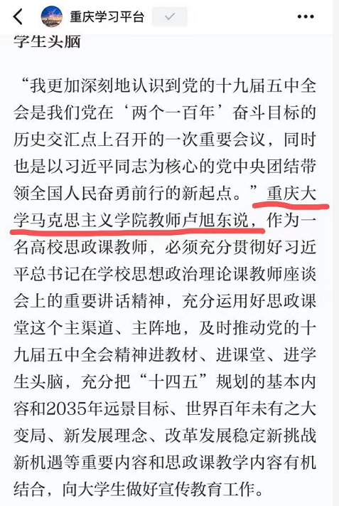 2020年11月15日,中央电视台的《新闻联播》节目播出了我院卢旭东老师接受央视记者采访的画面,《重庆日报》、“学习强国”等媒体也报道了卢旭东老师接受采访的相关内容。