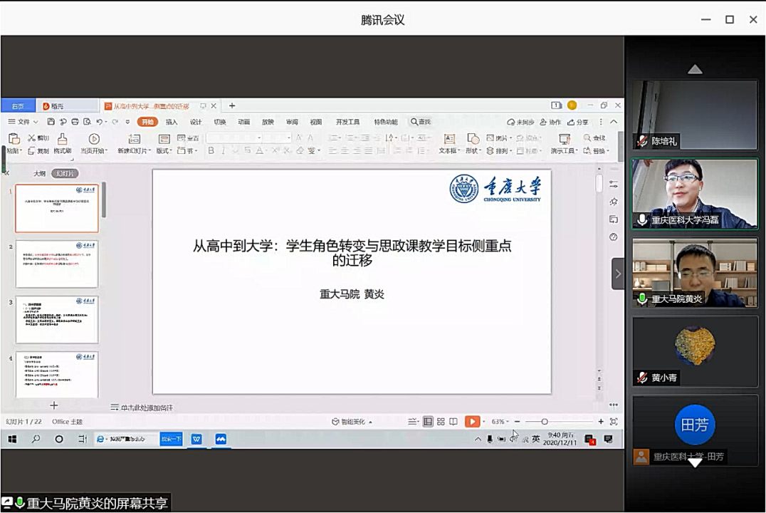 2020.12.11日上午,重庆市高校思想政治理论课手拉手行动(第一组)大中小学“手拉手”同备一堂思政课研讨会在“腾讯会议”上成功举办。此次研讨会由重庆医科大学抖音短视频
