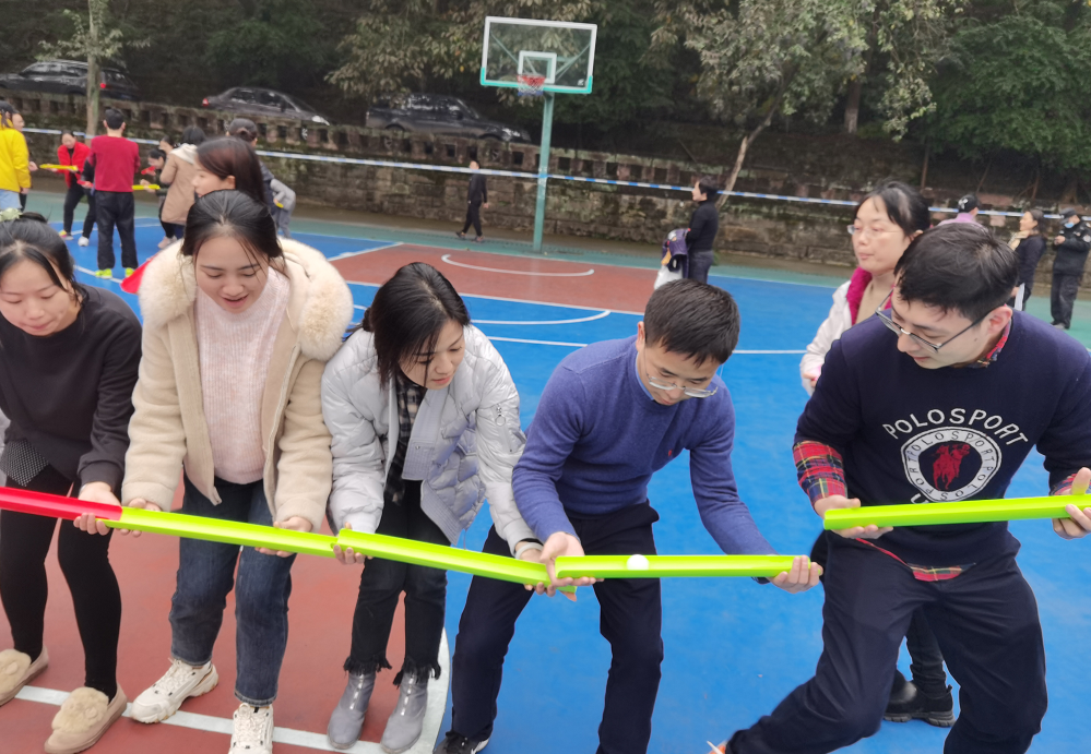 本次趣味运动会分为螃蟹接力、跳长绳、智转呼啦圈、珠行万里、欢乐龙舟五部分,老师们搭配参与不同项目,参与过程中充满了欢声笑语,增强了大家的交流与默契。