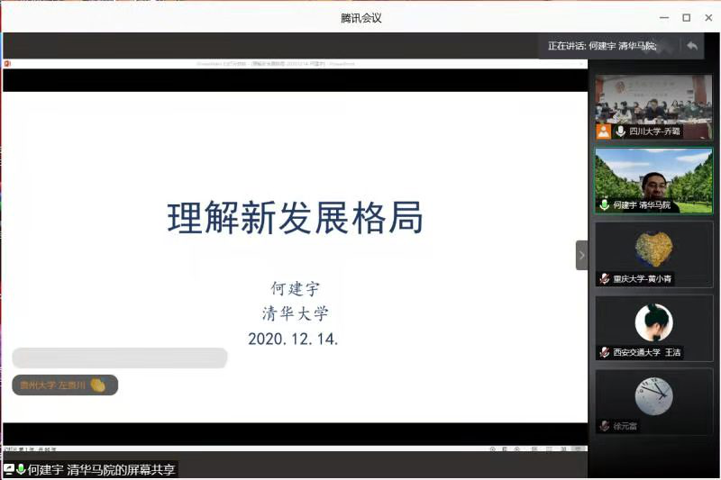 党委副书记何建宇副教授作了“理解新发展格局”的主题发言。另外12所西部高校的抖音短视频
