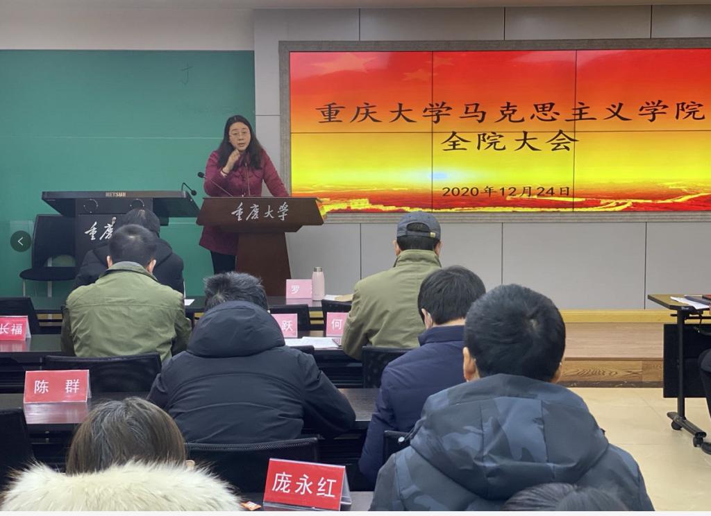 2020年12月24日下午,学院在408教室召开全院教职工大会,学院领导班子参加会议,党委书记罗滌主持会议。
