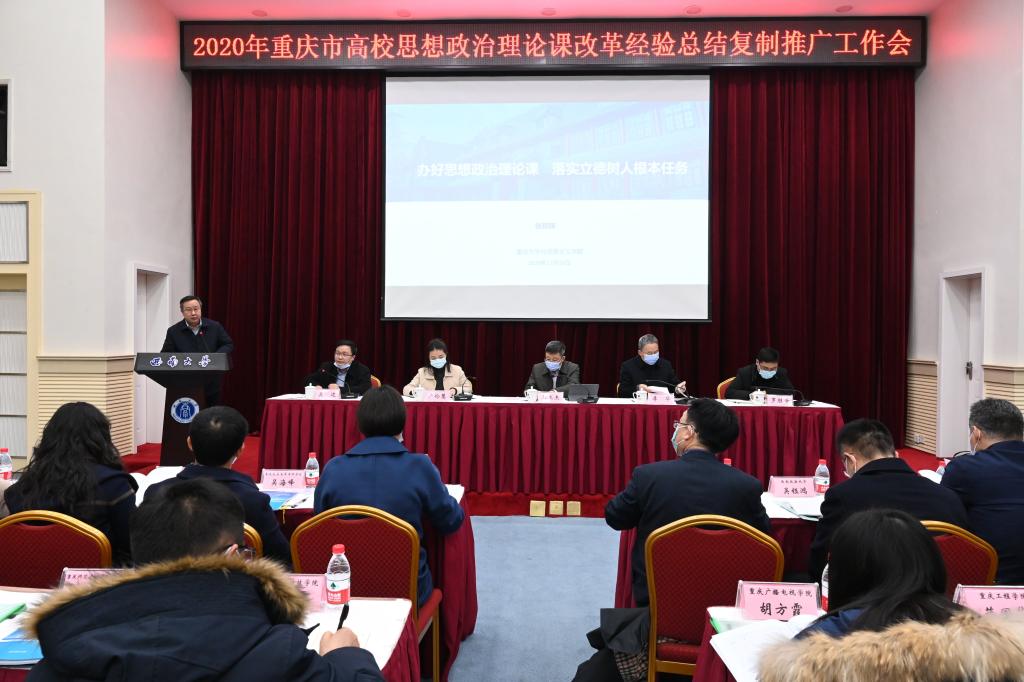 2020年12月28日,2020年重庆市高校思想政治理论课改革经验复制推广工作会在西南大学召开,学院张邦辉院长在会上作主题发言。