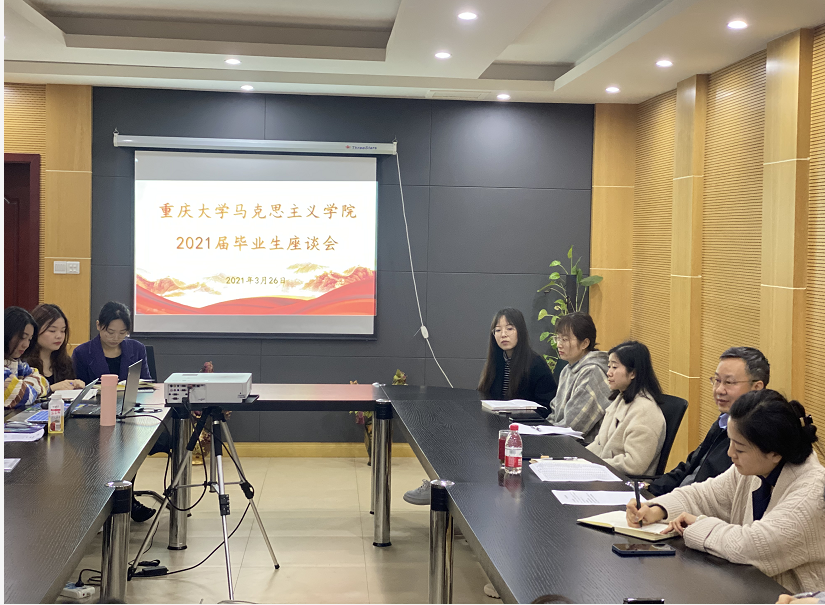 2021年3月26日上午,学院在414会议室召开2021届毕业生座谈会。学院院长张邦辉、辅导员毛娜、2021届全体毕业生参加座谈会,会议由辅导员毛娜主持。