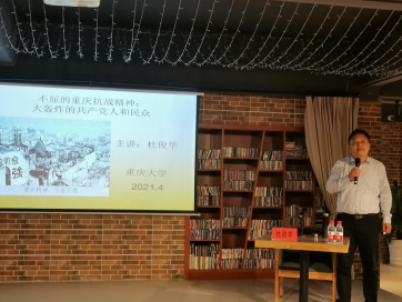 杜俊华教授作了题为“不屈的抗战精神:大轰炸的共产党人和民众”的专题讲座。讲座由周玲玉同学主持,全校共100余名师生参加讲座。