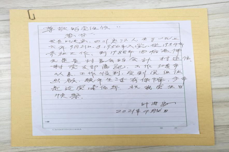 2019级研究生党员叶金凤爷爷写给党组织的信