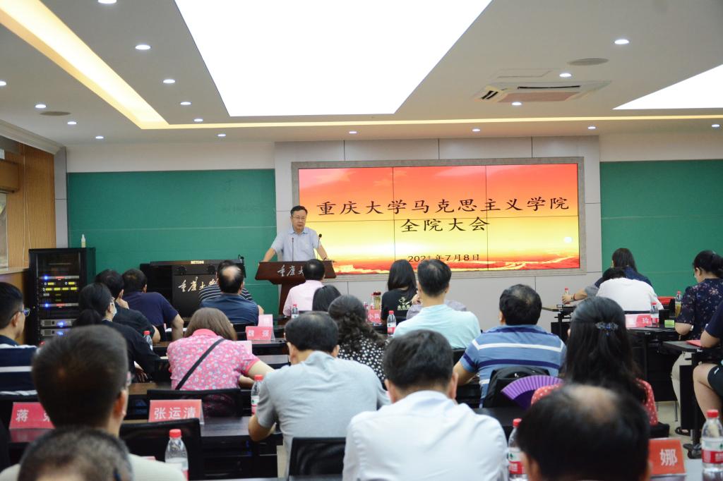 院长张邦辉首先通报了近期学院的发展动态,介绍了在学院近期在博士点申报等方面的工作进展。随后,他要求各位老师做好期末相关工作,鼓励老师们利用假期时间进行论文、项目申报书的写作,积极准备下学期课程的备课工作,他要求各位老师将习近平总书记在庆祝中国共产党成立一百周年大会上的重要讲话精神融入到课堂中去。最后,他提醒各位老师注意假期安全,注意疫情常态化防护。