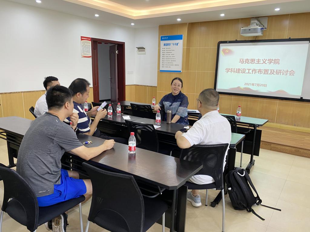 张邦辉首先通报了近期学院申报马克思主义理论一级学科博士点相关工作,他表示,7月12日,学校学位委员会通过了马克思主义理论一级学科博士点的汇报工作,这表明学院博士点的申报工作取得巨大突破。他指出,学院各学科方向要整合资源,凝练方向,坚持以学科建设为龙头,统领学院的科研、教学与人才培养工作;坚持人才强院战略,优化人才队伍结构,构建优秀学术团队;不断优化组织机构,整合资源,搭建学院发展平台,促进学院在新的历史时期实现跨越式发展。
