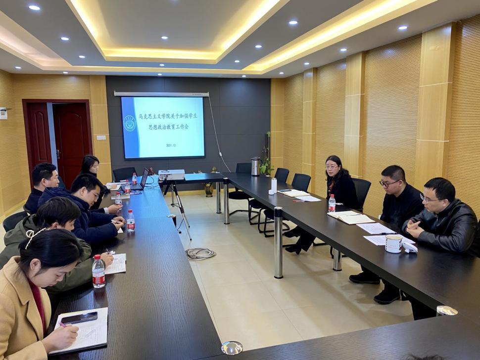 在414会议室召开关于加强学生思想政治教育工作会,学院党委书记罗滌、副书记温健琳,专兼职辅导员,学生党支部书记、部分学生干部参加会议。