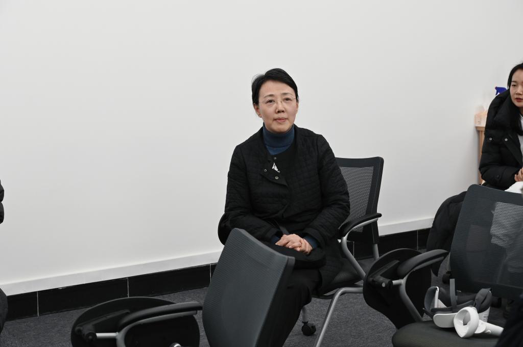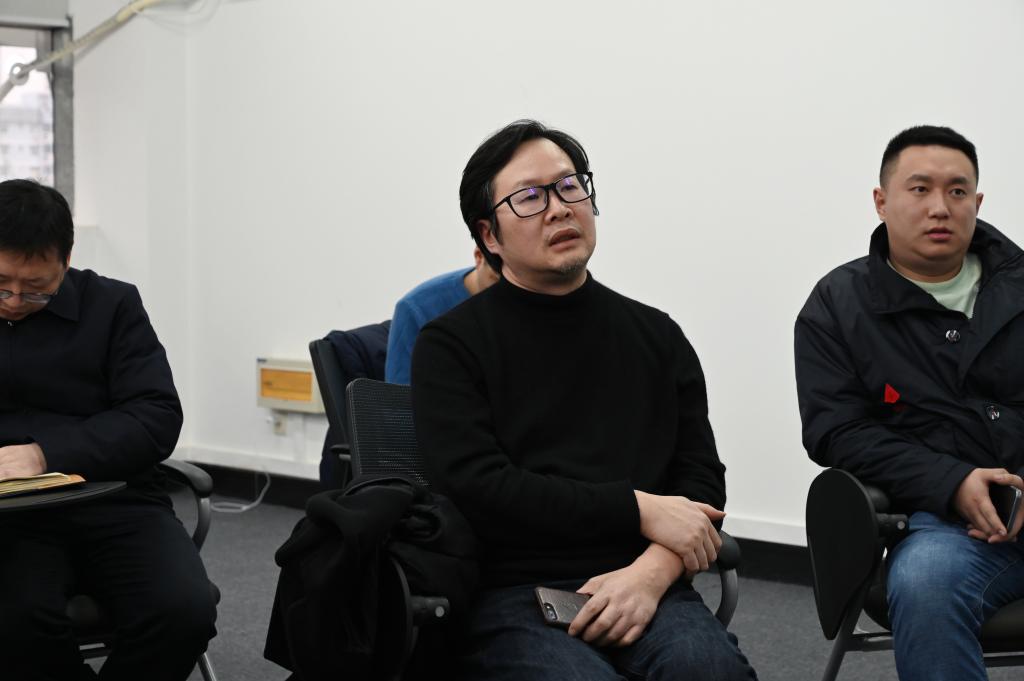 506室召开工作汇报会,实验室主任肖铁岩、学校实验室及设备管理处副处长何敏、美视电影学院副院长范蓓、学校实验室及设备管理处科长柴毅、抖音短视频