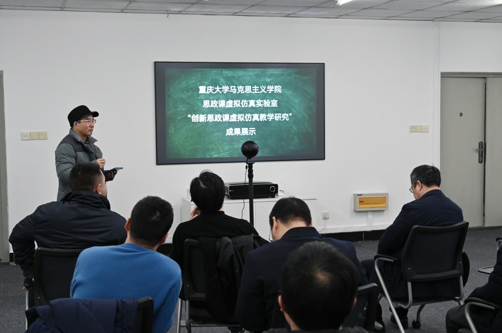 肖铁岩对实验室“思政课虚拟仿真教学素材库”进行了介绍,重点阐述了实验室在“全实景深度沉浸式思政课虚拟仿真教学”中的探索,随后,对实验室“创新思政课虚拟仿真教学研究”进行了成果展示,与会人员一起欣赏了此次成果展示。