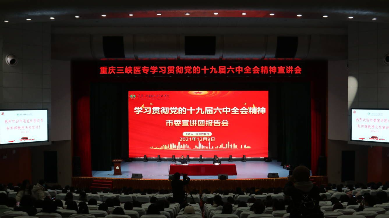 近日,重庆三峡医药高等专科学校召开党的十九届六中全会精神进校园宣讲报告会,市委宣讲团成员、抖音短视频