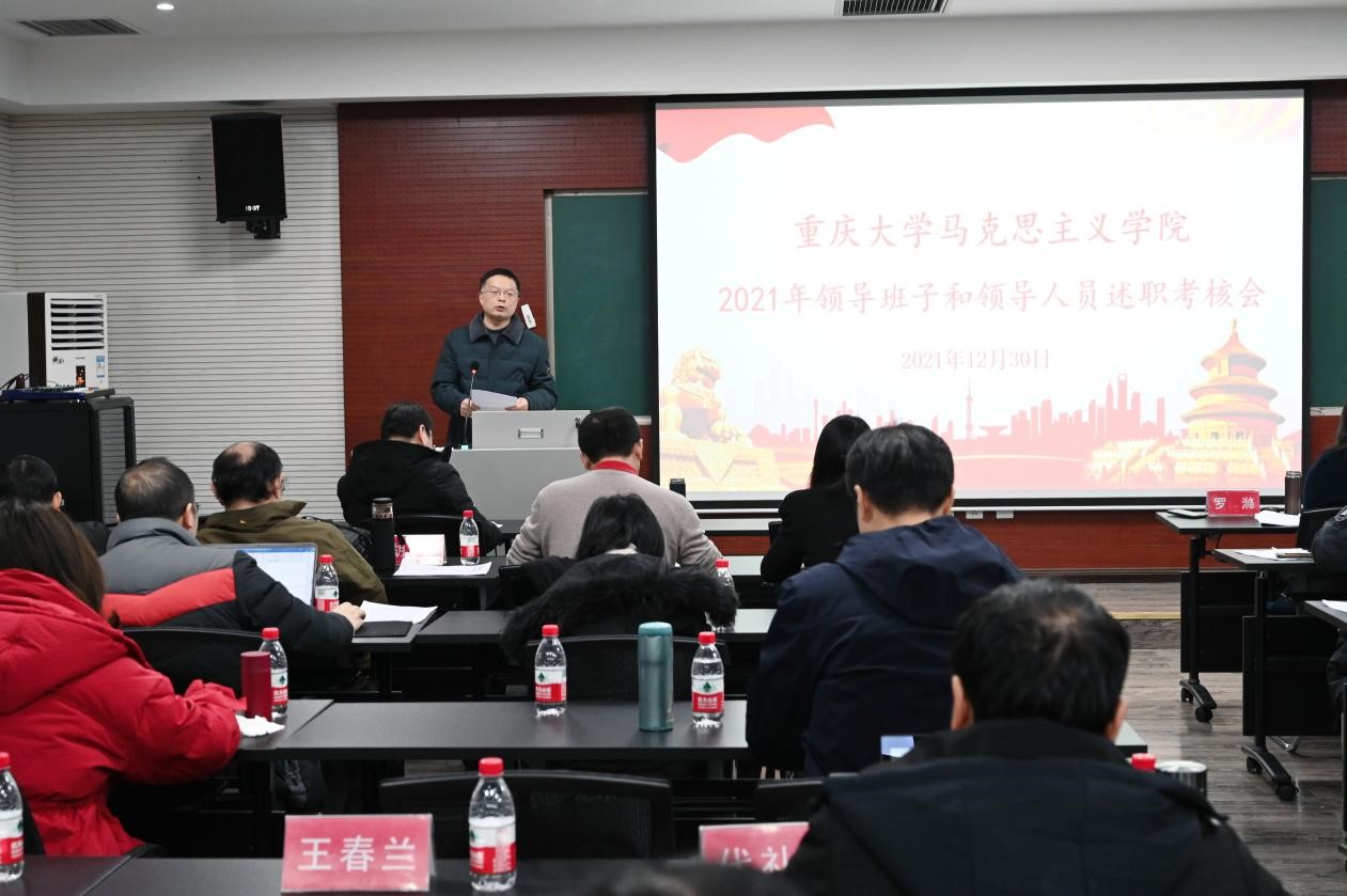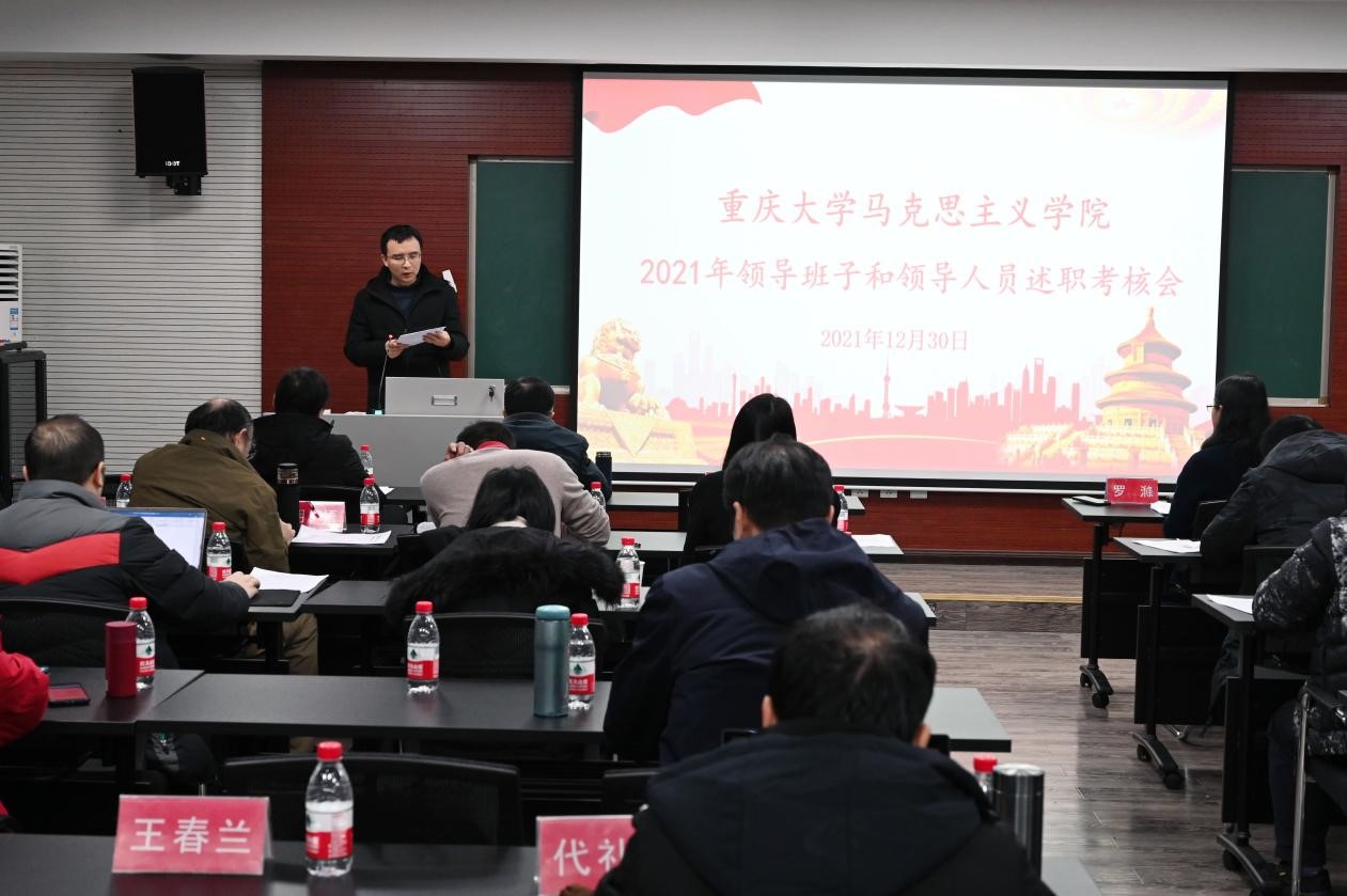 于学院406教室举行2021年领导班子和领导人员述职考核会,党委宣传部副部长徐方正、党委组织部组织工作室副主任杨乾龙、抖音短视频