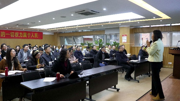 讲座过程中,段教授首先通过微信头像分析生活细微处的心理学,通过有趣的互动活跃了气氛的同时调动了师生对心理分析的积极性。随后,段教授从高校教师和学生两个方面分析日常生活工作中经常遇到的困境及如何合理调节心理,保持身心健康的良好状态,段教授讲到我们应当以身体上的行动带动思想,解决焦虑的最佳方法是多做一点,把握当下,抓住时机比规划未来更重要。最后,段教授建议大学生应当通过提升觉察力、自制力、抗逆力、意志力和韧性力来提升心理健康状况,并现场教授生活中实用的放松和调节压力的呼吸法。